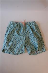 - Mens Peter Millar Mint Green Blue Fish Print Seaside Collection Swim Trunks XL