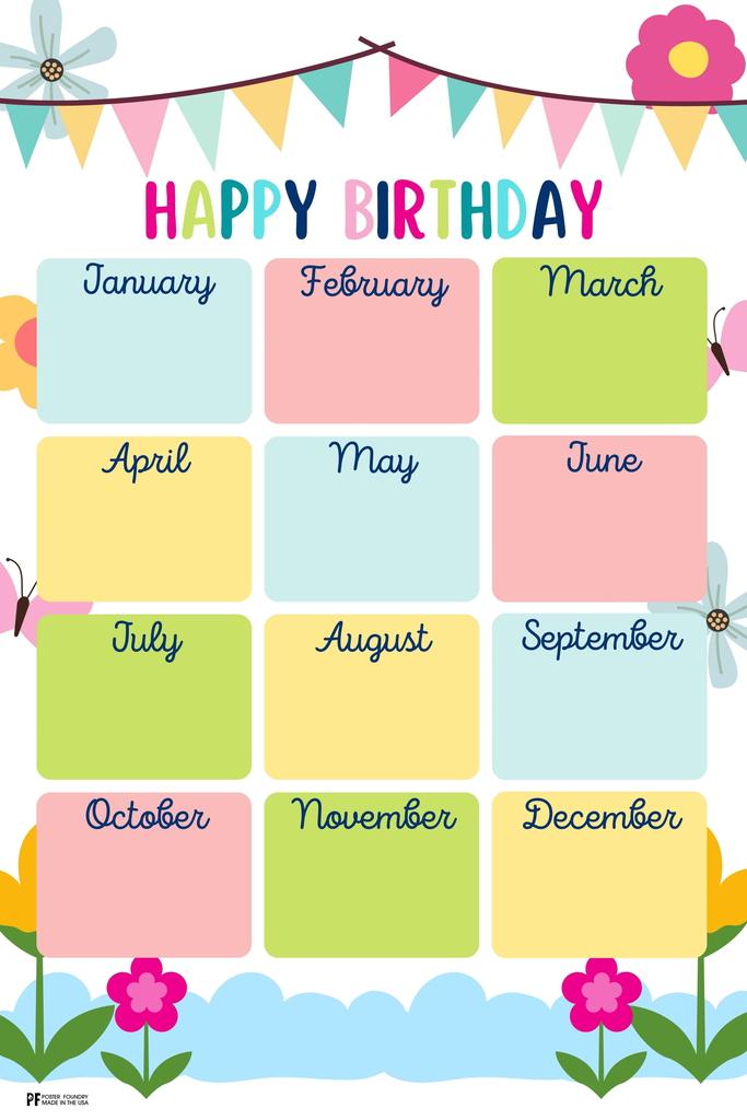 Laminated Birthday Chart For Classroom Happy Birthday Poster Display Sign Poster Dry Erase Wall Art 16x24