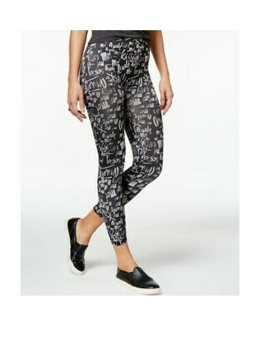 Seamless Skimmer Leggings Black Kiss Script S/M FIRST LOOKS by HUE $22 NWT