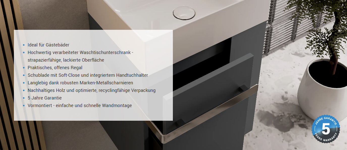 Die perfekte Wahl für dein Gästebad – der Waschtisch mit Unterschrank COMPACT 450. Qualität, die überzeugt, im Design, das bleibt!