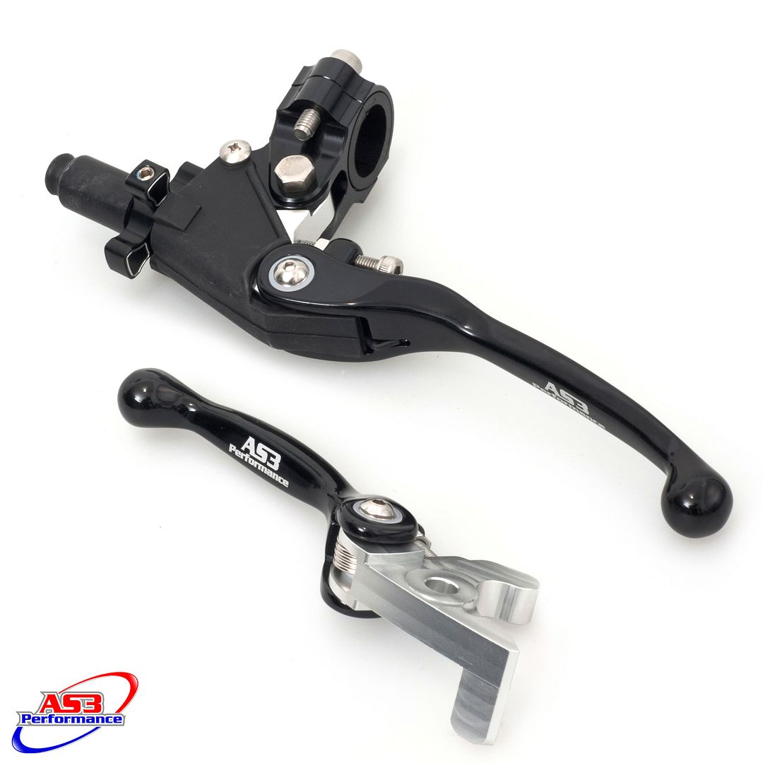 The AS3 Performance Factory Series front brake and clutch levers are one of the most advanced and adjustable levers on the market. Both levers feature a flexible pivot design which allows the levers to bend outwards on impact to prevent them snapping or bending. Both levers also have an adjustable reach setting allowing the rider to set their preferred distance between the lever and the bars. The clutch assembly replaces the entire OEM perch and is fitted with a 'quick adjust' clutch cable adjuster which allows the rider to easily adjust the responsiveness of clutch cable while riding. The clamp on the clutch perch comes with 2 smooth plastic inserts, these inserts help prevent damage to the assembly by making the whole perch rotate on impact. Lastly the clutch assembly is finished off with 2 rubber boots which neatly cover vital areas to keep out dirt and debris.