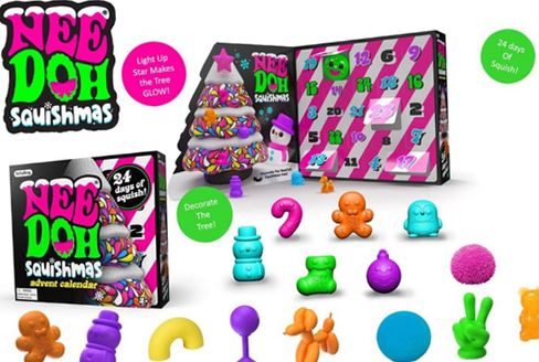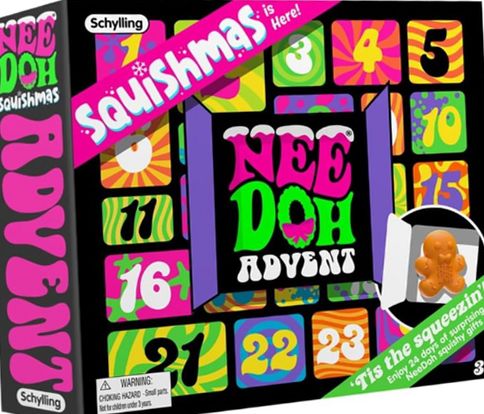 'Tis the squeezin'! NeeDoh is here to bring the groovy and help you chill with the NeeDoh Squishmas 2024 Advent Calendar. Countdown to Squishmas Eve and open the numbered windows each day for a new surprise. Find 24 unique tiny squish sensations. Each surprise has bright neon colors!