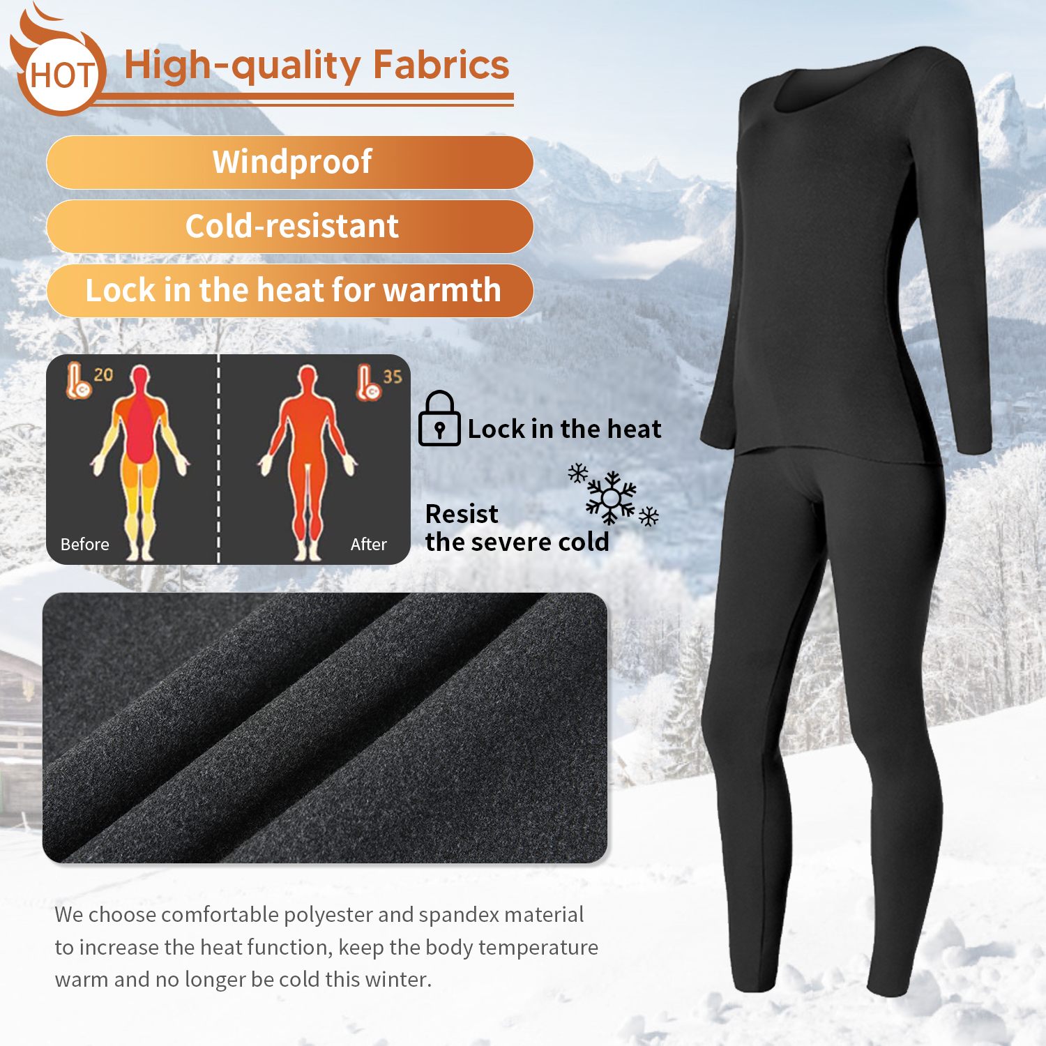 4 Way Stretch: The soft and stretchable fabric on these womens long underwear fit snugly against your skin and will keep you moving freely no matter what your activity is.