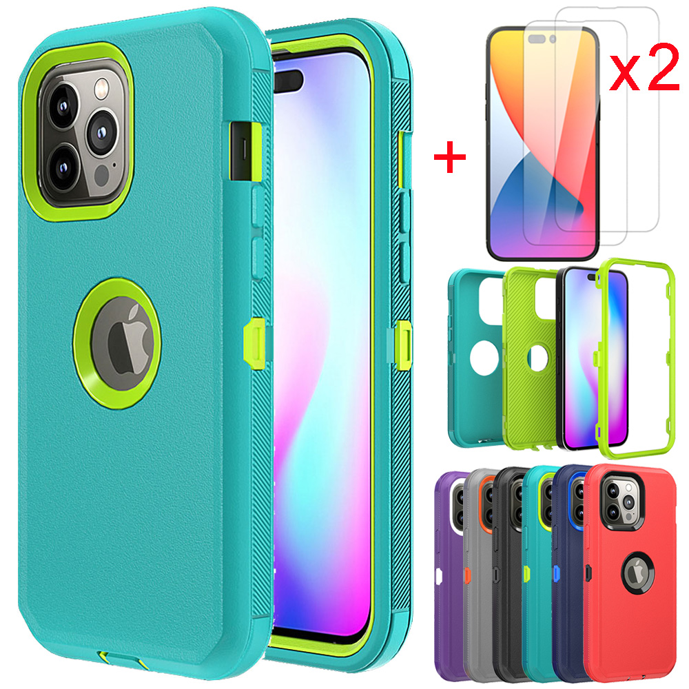 Or 1*Heavy Duty Hard Phone Case Cover+2* Tempered Glass Screen Protector