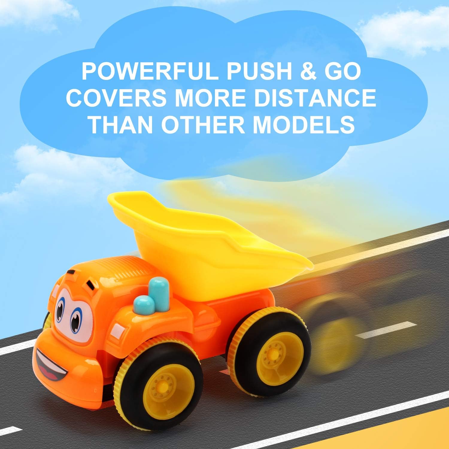 KEEP YOUR KIDS SAFE: We test all our toys in 3rd party CPSC and ASTM laboratories. We make our toys with high quality plastic so they withstand countless hours of playing. These cars are friction powered meaning once you push them they will keep on rolling for a long distance. There is no need for batteries! Once they stop - push them again and off they go