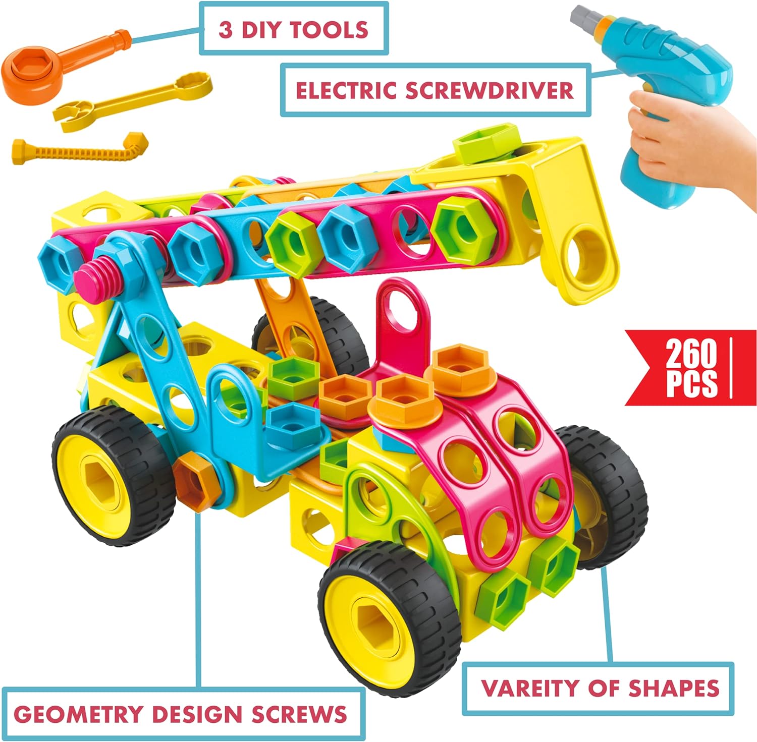 260 Piece STEM Building Kit – Engineering Blocks & Power Drill for Kids Age 3+
