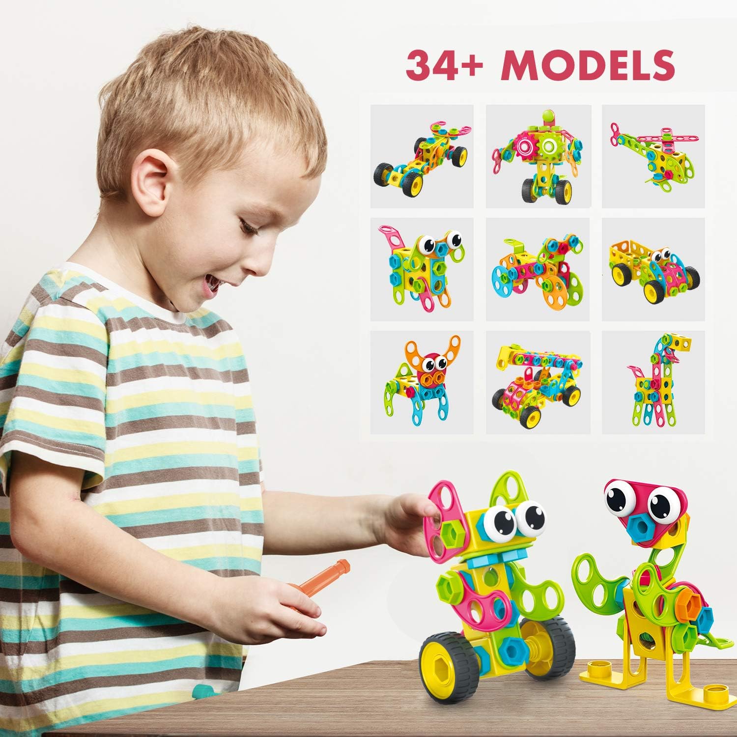 STEM EDUCATION – STEP-BY-STEP INSTRUCTIONS: Build a total of 34 Unique Models ranging from animals and vehicles that vary in different degrees of difficulty. Designed to encourage your kids at different levels as they develop their fine motor skills - whether your child is 3 years old or 8 years old, we have a model for them. As they grow up and their skills evolve, so do the models, they become more difficult to keep on challenging them as they further progress & develop their mind