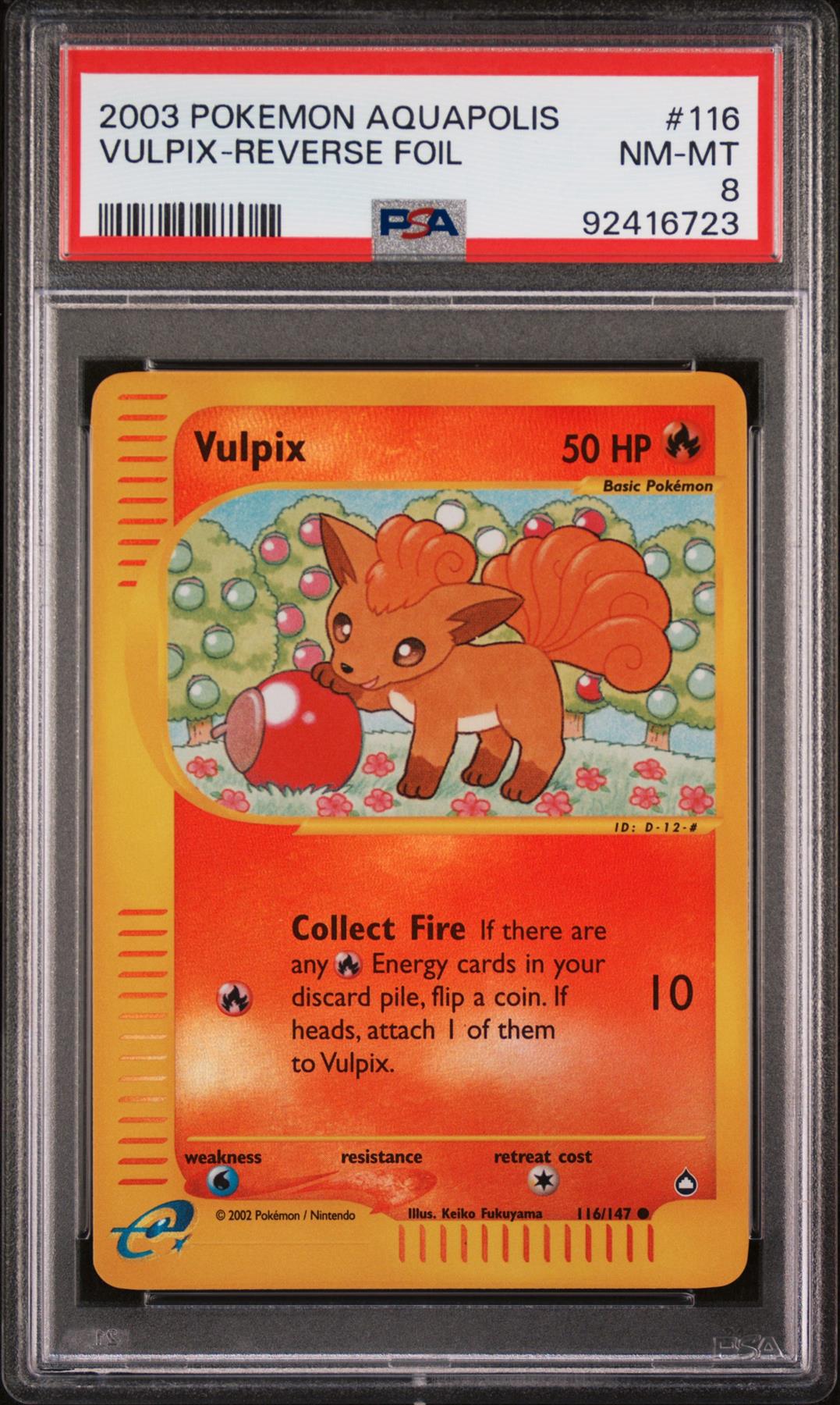 Pokemon WotC Aquapolis Reverse Holo Card #116 Vulpix PSA 8