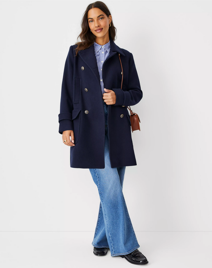 Details: Cleanly structured and impeccably tailored, this luxe wool blend peacoat