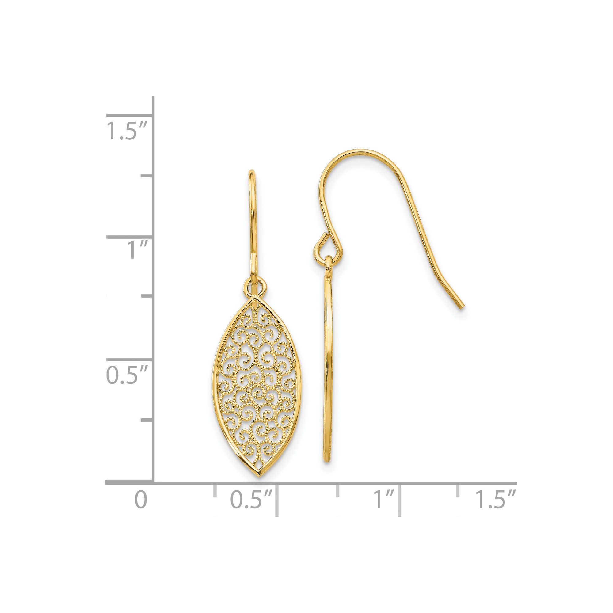 14k Yellow gold, Filigree, Polished, Shepherd hook