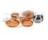 Gotham Steel 10 Piece Copper kitchen and cookware set about the Product Gotham Steel is the first Product of its class to actually utilize high grade titanium and ceramic as surface finishing. This sophisticated combination not only ensures maximal durability it also allows for multi functional, all around usage. Titanium plus ceramic coating faqs high heat threshold to sear perfectly browned steaks! everything just slides right off, even burnt chocolate and cheese. Food flavor is not altered when cooking tomato based or any acidic food products thanks to the ceramic component! the non stick surface cleans easy! versatile: for stove top cooking, or baking! rust proof all over.
