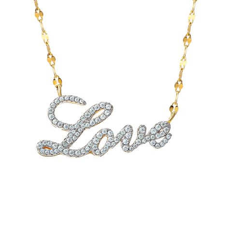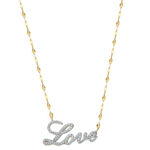 Brilliance Fine Jewelry Women's Sterling Silver 14kt Gold Plated Simulated Diamond Love Necklace, 18" Chain