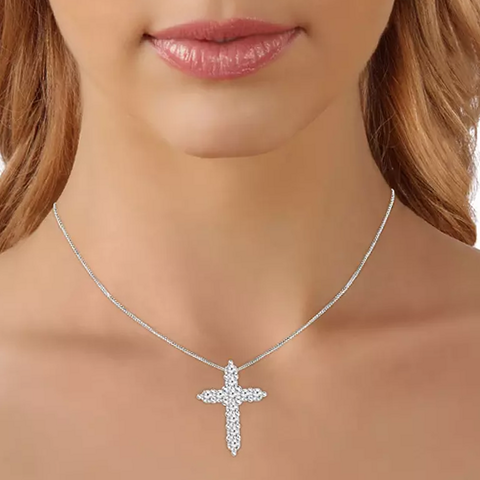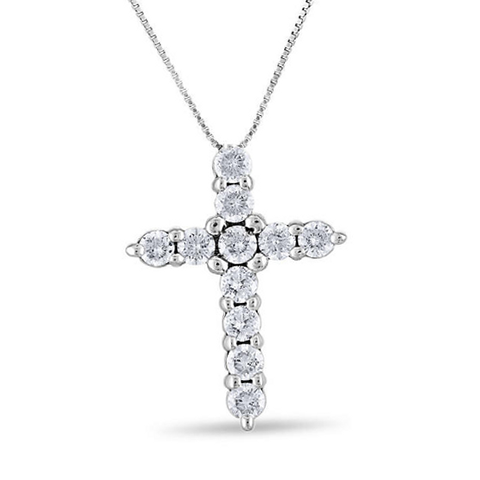 unbranded PD2495WB4-1 0.96 CT. T.W. Diamond Cross Pendant in 14K White Gold (H-I, I1) This 0.96 CT. T.W. diamond cross pendant dangles gorgeously from an 18-inch 14K white gold box chain and secures with a lobster claw clasp.