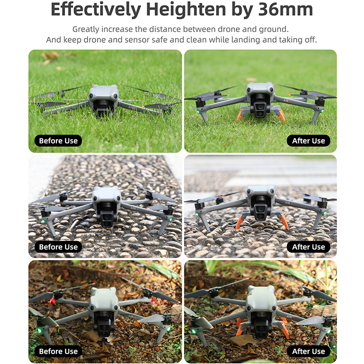 l Effectively heighten by 36mm. Greatly increase the distance between drone and ground. And keep drone and sensor safe and clean while landing and taking off