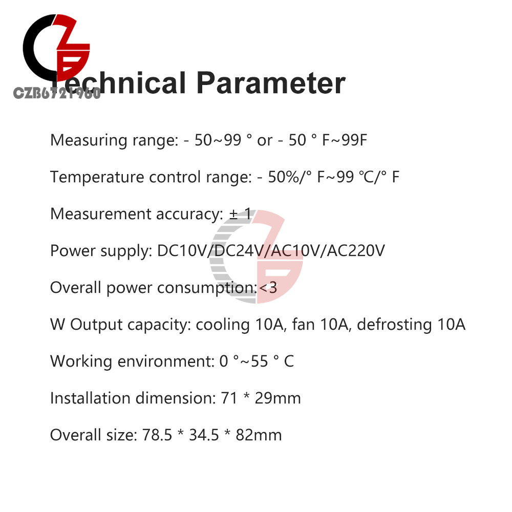 Output capacity: refrigeration 10A, fan 10A, defrost 10A