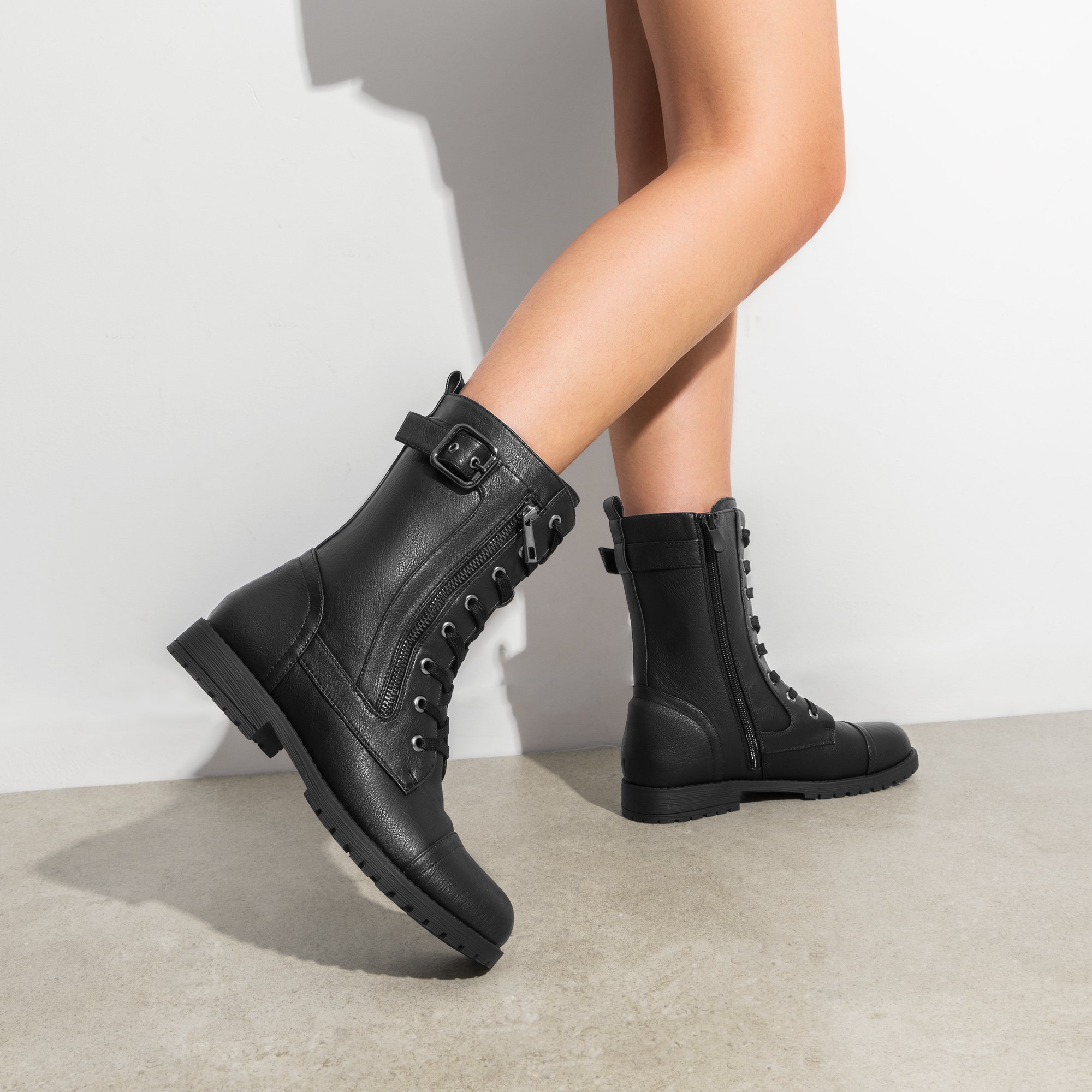 Effortless Wear: The side zipper allows for a swift and hassle-free dressing experience. Slip into these women's military-style boots for a seamless entry into trendy attire.