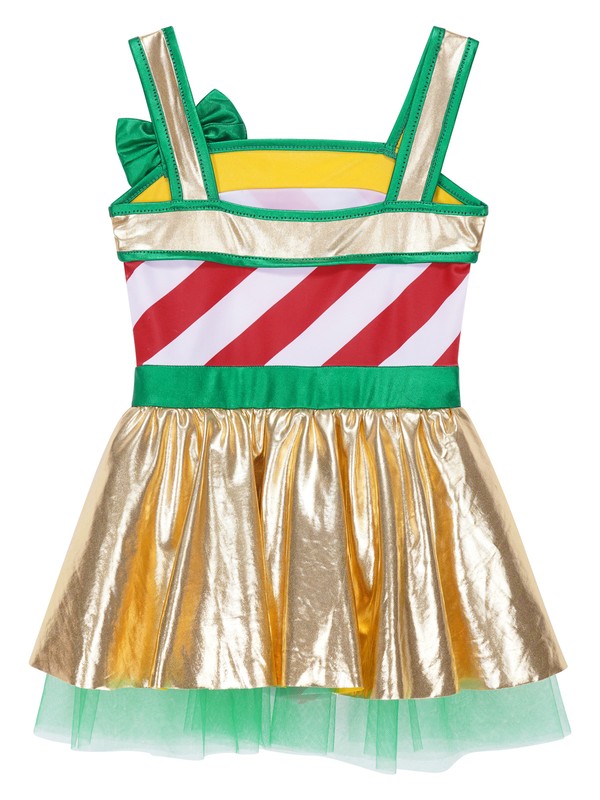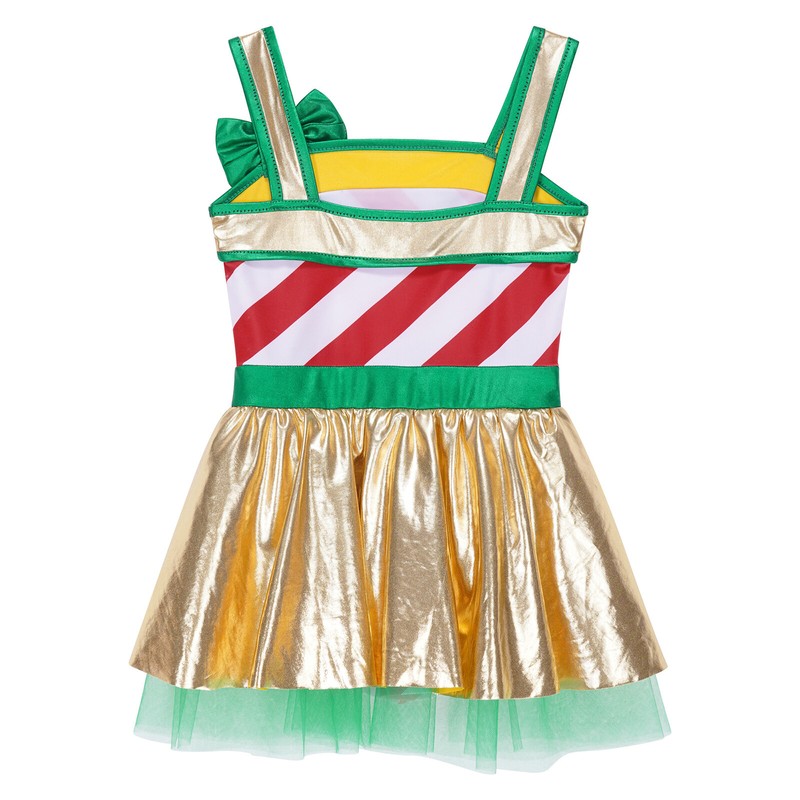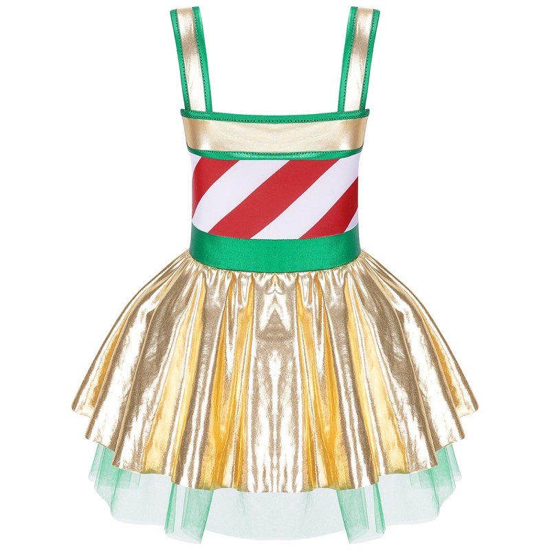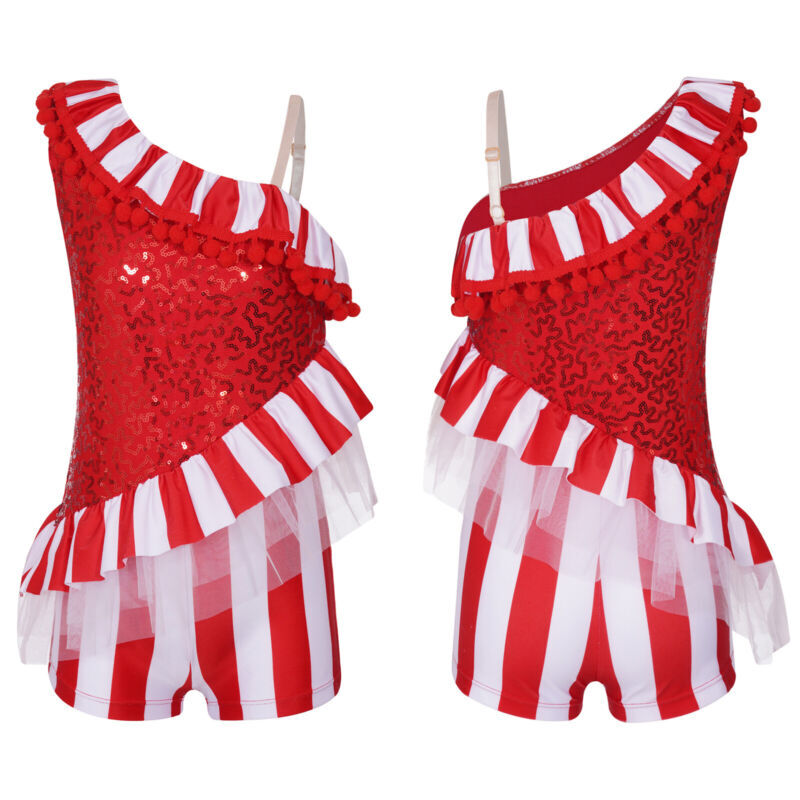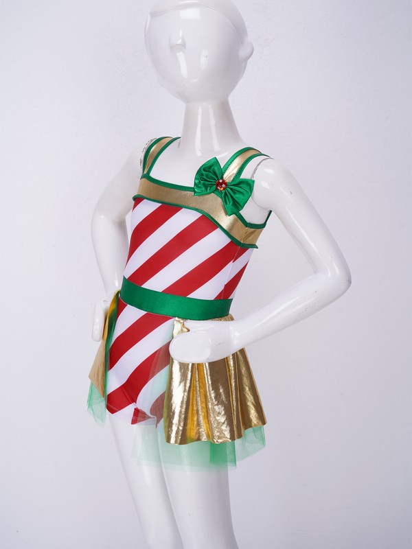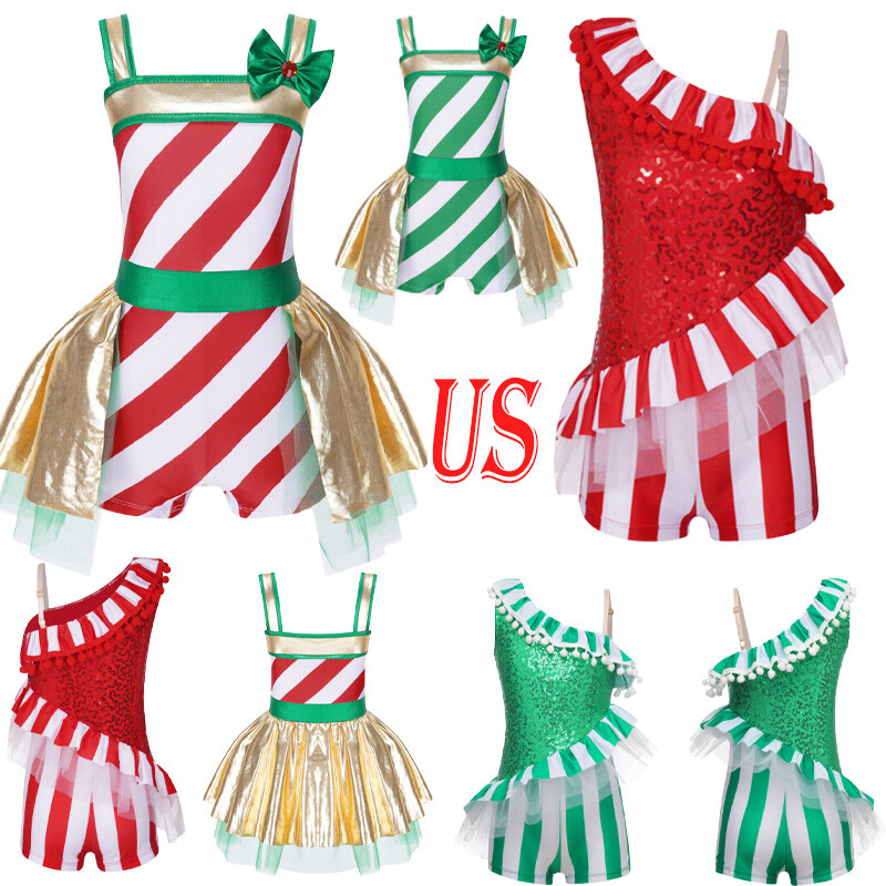 US Girls Christmas Dance Costume Candy Cane Striped One Piece Dance Gymnastics