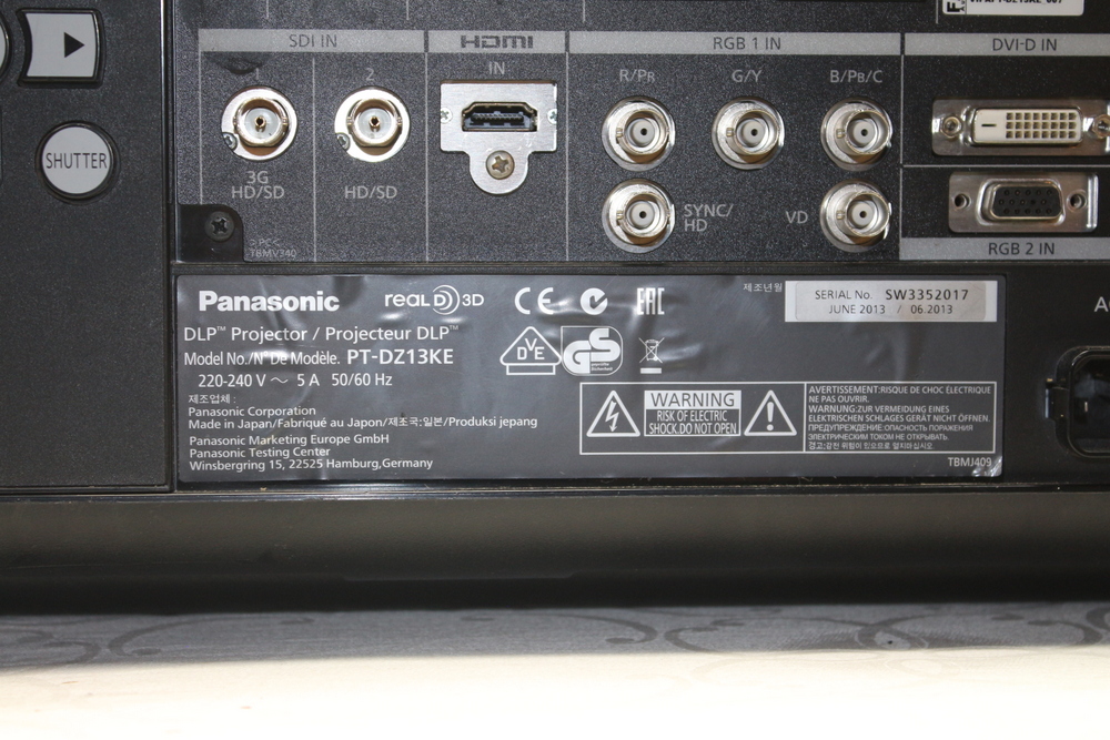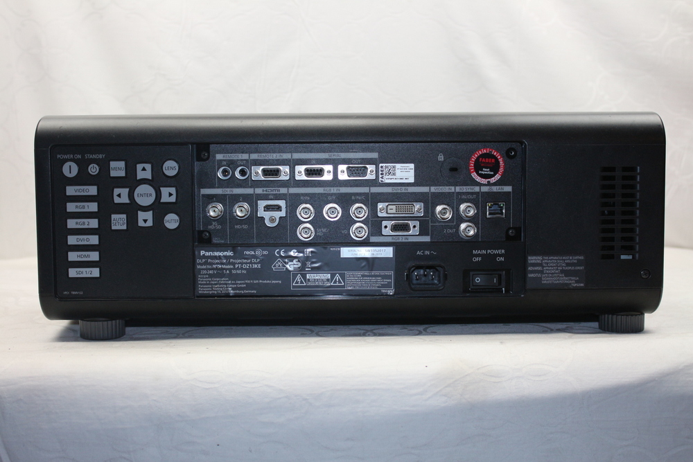Der Panasonic PT-DZ13K ist gebraucht aber in gutem Zustand. Der Projektor ist erst 4501h gelaufen, die beiden Lampen 954/954h. Im Lieferumfang sind neben dem Panasonic PT-DZ13K ein Strom- und HDMI-Kabel, Fernbedienung und eine Rechnung mit ausgewiesener MwSt. enthalten. Lieferung erfolgt ohne Objektiv (siehe andere Angebote -> Panasonic ET-D75LE-Serie).