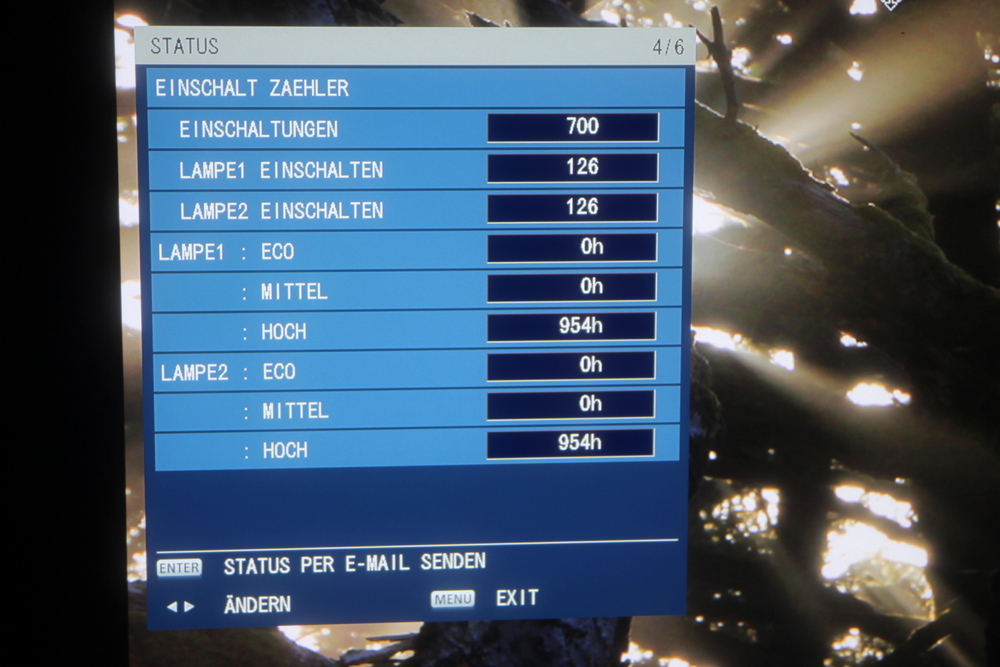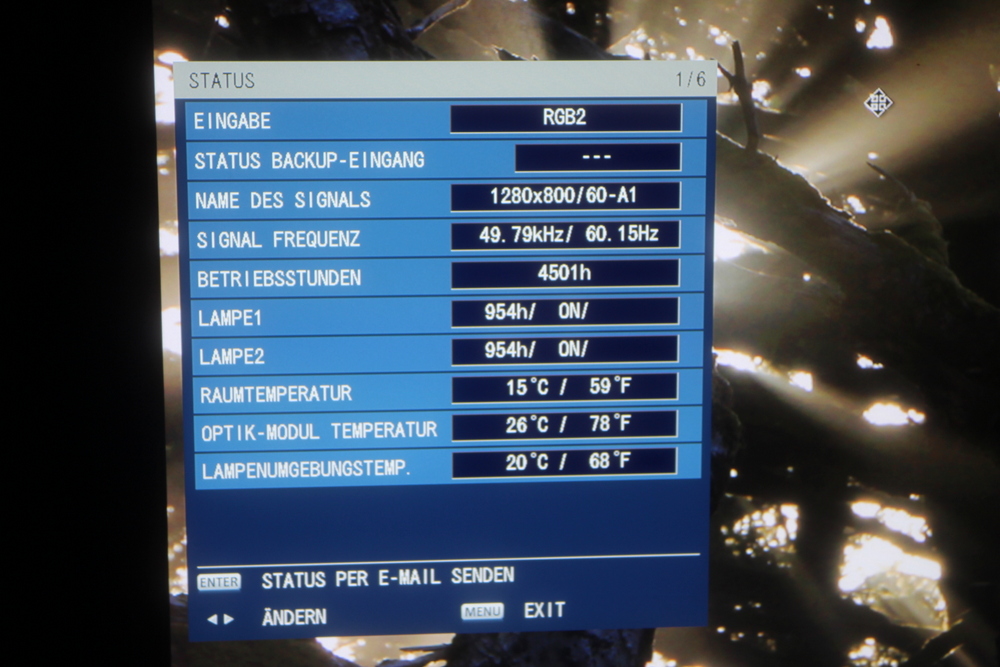 Zustand: gebraucht, voll funktionsfähig, Projektorlaufzeit: 4501h, Lampenlaufzeiten: 954/954h