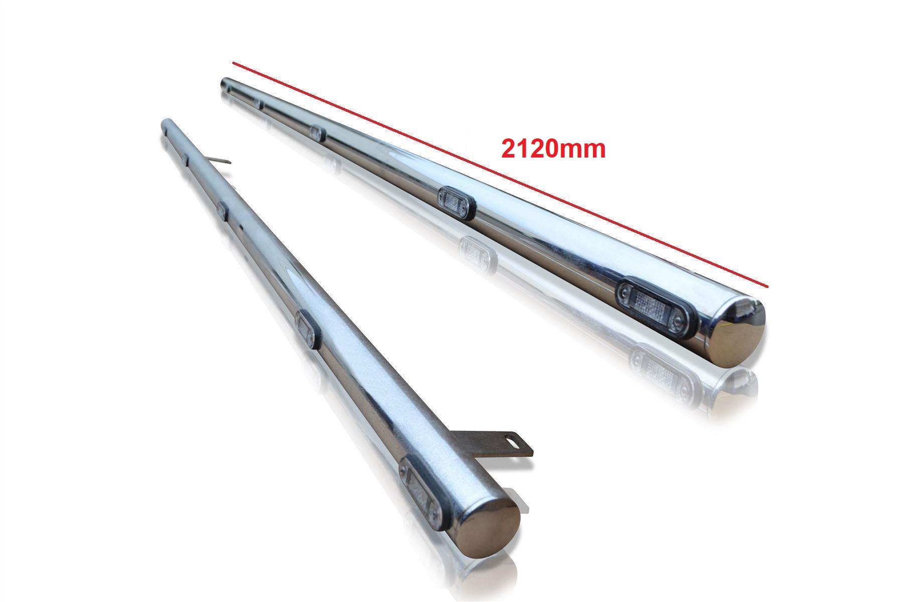 High-quality Black Powder Coated Stainless Steel Side Bars - set of 2 (Pair) with 5 White Flush LED lights in each bar for Saic Maxus Deliver 9 models SWB (Short Wheelbase). These top of the range side bars will have your SWB looking top-spec at a fraction of the cost of the genuine items but with the same high quality.