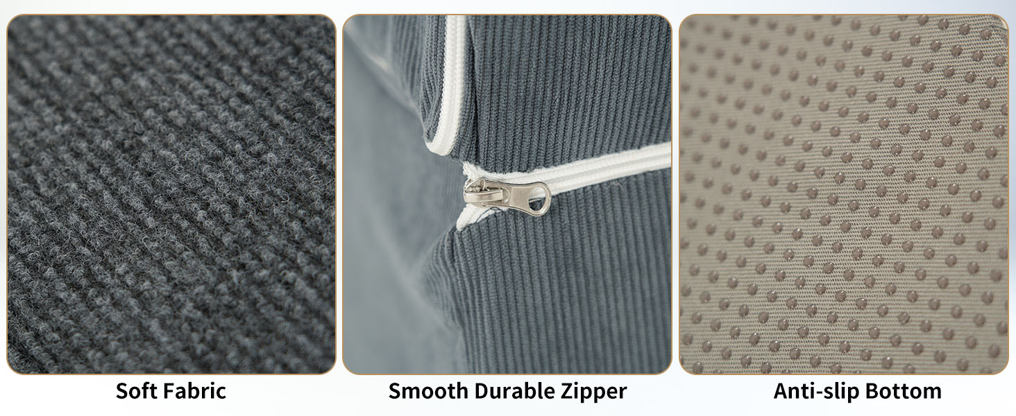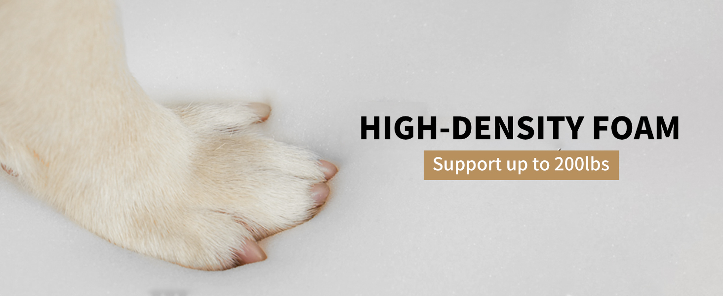 Premium Carpet for Paws and Play: Our dog ramp is covered by 370g carpet fabric on each slope,which is not only durable but also adds extra traction for your pet’s paws, preventing slips during their climb. Paired with high-density 25D memory foam that maintains its shape with a 98%+ rebound rate, these steps are a luxurious haven for your furry friend