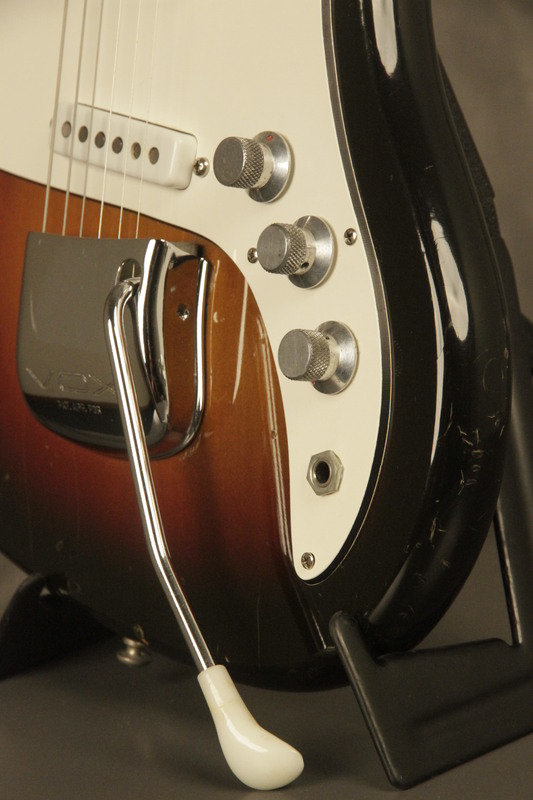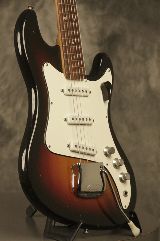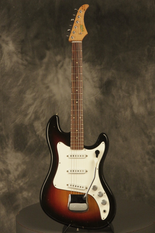 Olivia's Vintage would like to present this 1960's made in England JMI Vox Super Ace guitar in its original Sunburst finish. It has a good playing neck with great frets. It's all original and includes a period correct non-original Vox hardshell case. This Super Ace looks great with nicks + dings, some finish checking and other cosmetic wear. The tremolo arm is just a bit loose, but works. The guitar itself remains structurally sound with no cracks, breaks or repairs. All electronics work and sound great. We are happy to ship internationally.