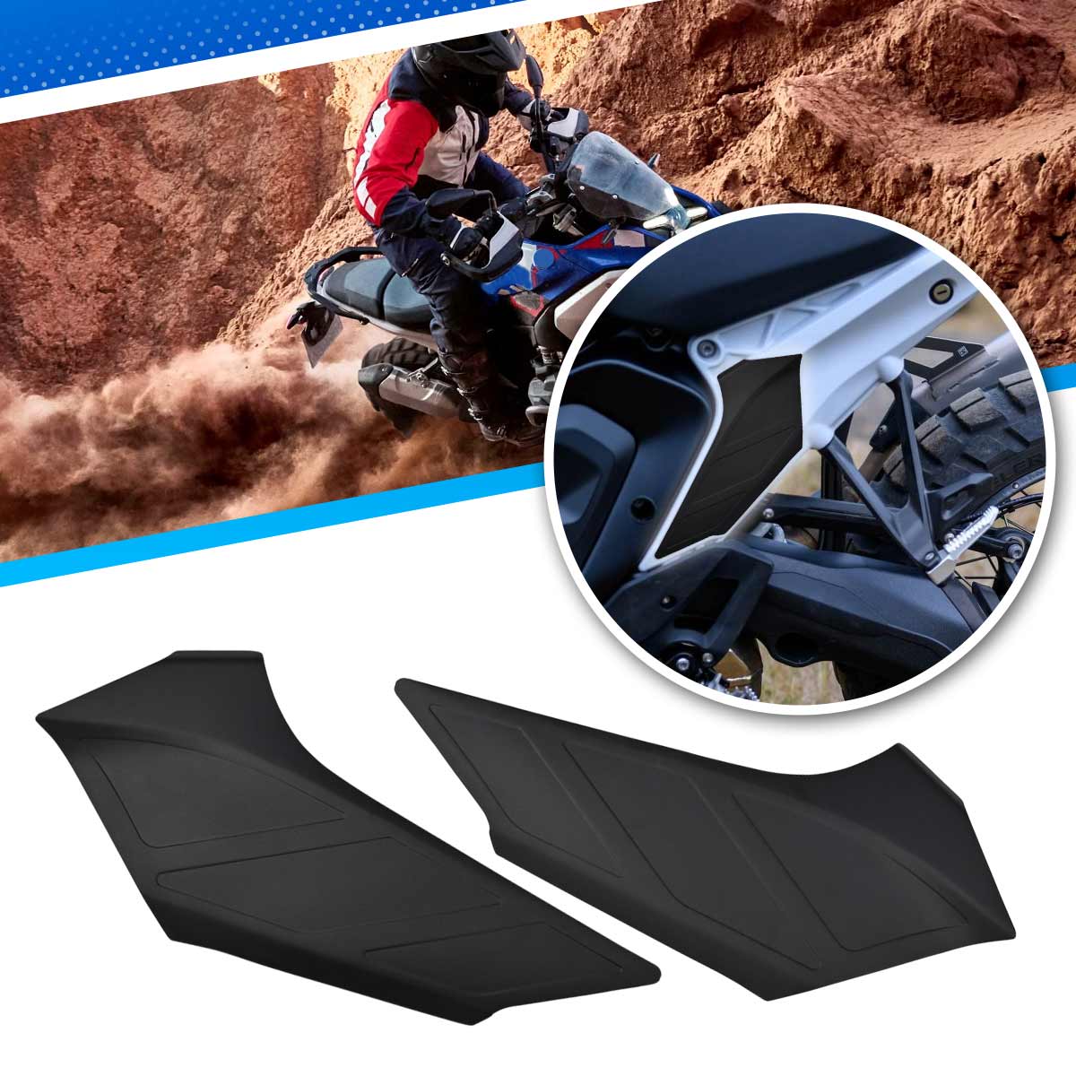 Features: For BMW R1300GS Trims To Protect The Paintwork And Frame Made of sturdy and durable material. Easy to install and remove. The frame protection made of black plastic prevents scratches and reduces the risk of chafing from motorcycle boots in tough off-road use. The set includes frame protection for the left and right sides. Effective protection made of impact-resistant plastic Easy assembly in just a few steps Set for mounting on both sides Specifications: Condition: Brand New Color: Black, Grained Material: ABS+PC Plastics Installtion with transparent strong adhesive tape, removable without leaving any marks. Fitment: For BMW R1300 GS 2023- Package Included: 1* left trim 1* right trim Note: Not suitable for the motorcycles with ENDURO PRO Package The real color of the item may be slightly different from the pictures shown on website caused by many factors such as brightness of your monitor and light brightness. Please allow 1-5mm slight manual measurement deviation for the data.