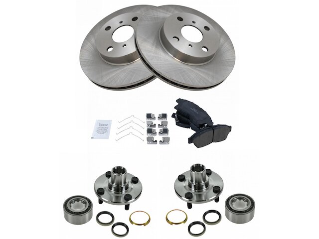- Package Contents: (2) Front Brake Rotors; (1) 12 oz DOT 3 & 4 Brake Fluid; (2) Front Wheel Bearing & Hub Kits; (1) 13 oz Non-Chlorinated 50 State Formula Brake Cleaner; (1) Front Ceramic Brake Pad Set with Contact Point Grease & Hardware