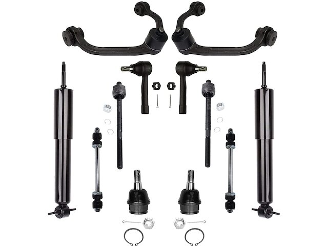 Features:- Kit Includes: (2) Front Upper Control Arm w/Ball Joint + (2) Front Shock Absorber + (2) Front Sway Bar Link + (2) Front Outer Tie Rod + (2) Front Inner Tie Rod + (2) Front Lower Ball Joint