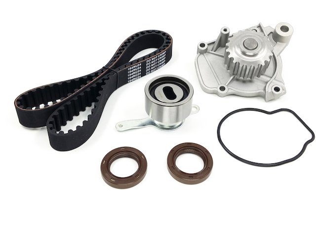 Product Remark: Includes; (1) Timing Belt - 104 Teeth, (1) Timing Belt Tensioner, (1) Water Pump and Seal, (1) Camshaft Seal, (1) Crankshaft Seal