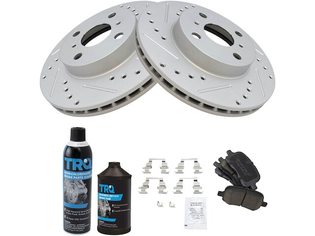- Package Contents: (1) 12 oz DOT 3 & 4 Brake Fluid; (1) 13 oz Non-Chlorinated 50 State Formula Brake Cleaner; (1) Front Ceramic Brake Pad Set with Contact Point Grease & Hardware; (2) Front G-Coated Performance Brake Rotors