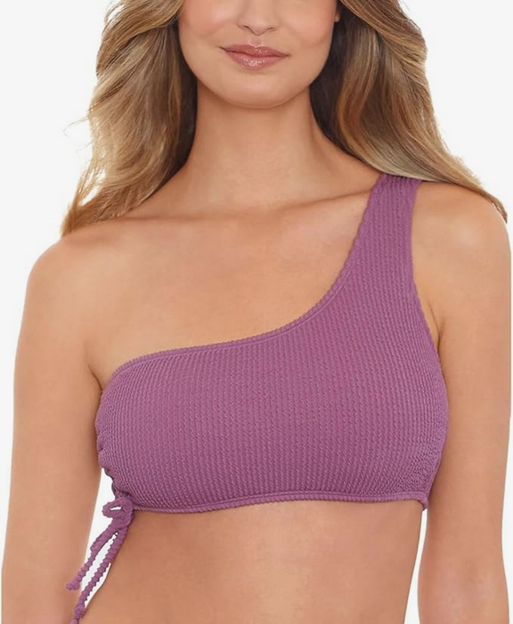 Salt + Cove heats up the beach with a ribbed one-shoulder bikini top. Drawstrings at the side complete the look.