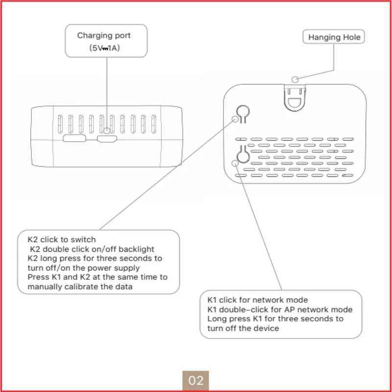 Note: 1. Please make sure to use 5V 1A output power to supply it ,or the device would be burned off.2.Product has built-in sensor that support high precision detection datas.