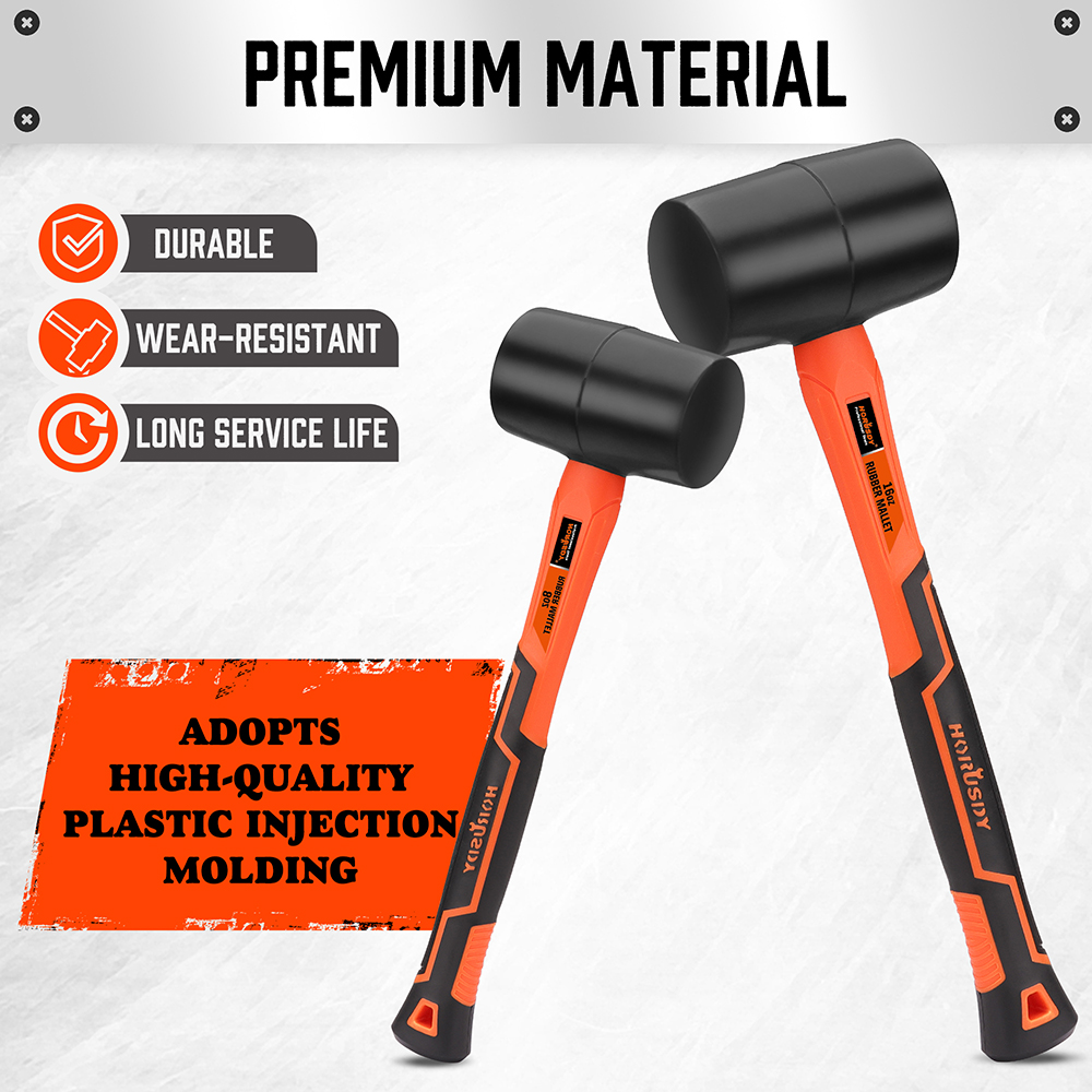 2 Pcs Rubber Mallet Hammer Set Heavy Duty Fiberglass Grip Handle 16 8 oz