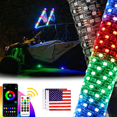 Fit for UTV, ATV, SUV, Car, Golf Cart, Truck, and Boat, this 2FT RGB LED Whip Light is universally fit, you can use it on different vehicles and choose any location to install it.