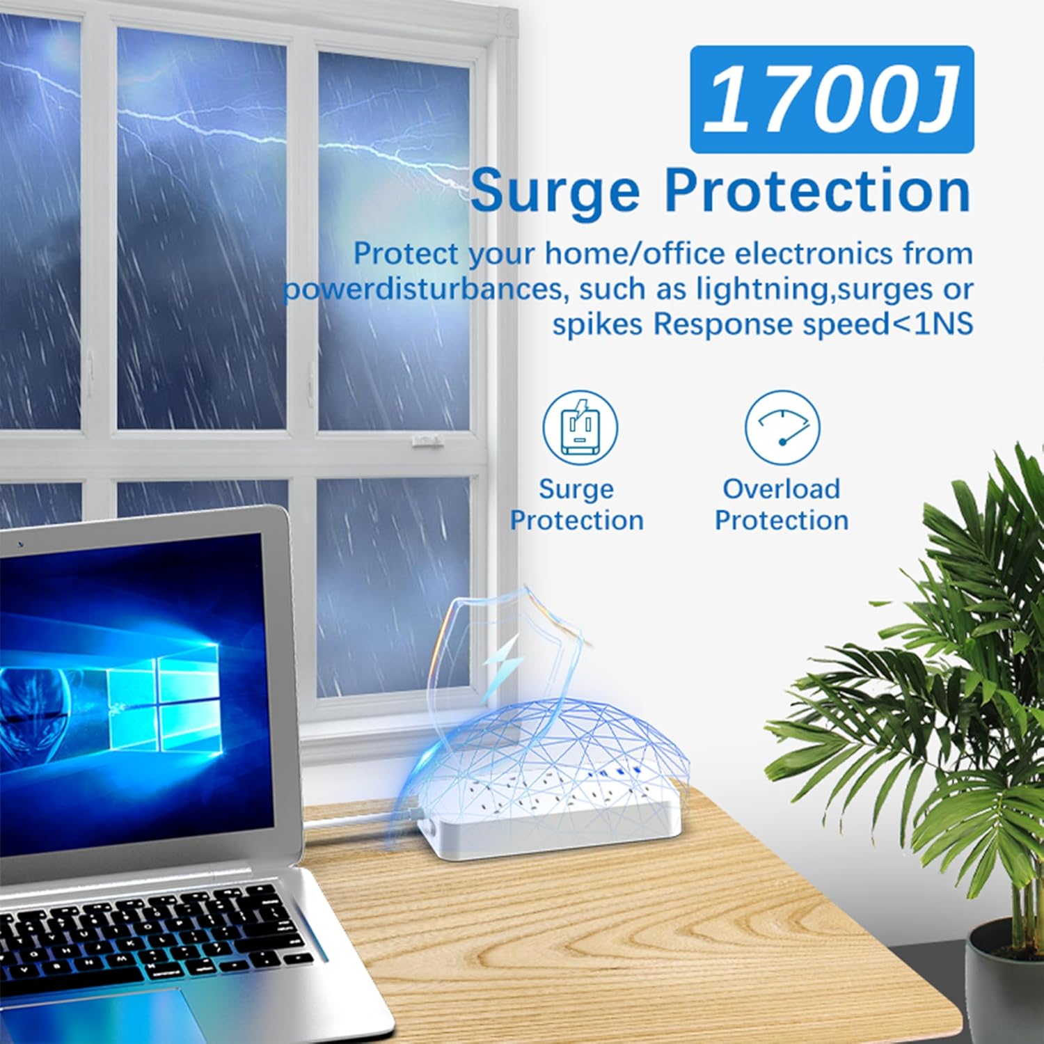 【8AC Surge Protector Outlets】- The 3 level complementary Surge Protector Circuit which composed of TVS (transient voltage suppressor), MOV (metal oxide varistor), GDT (gas discharge tube), with minimum 1700 Joules energy absorbing capacity, could protect your devices much more quickly and reliably than other brand’s 1 level MOV Surge Protection Circuits.