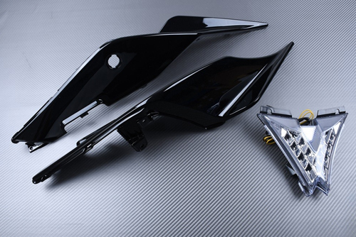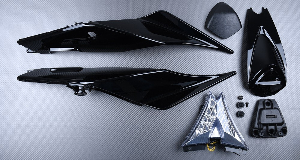 Aquí estamos con el colín, el carenado trasero, el bloque óptico de la parte trasera, el carenado asiento de plástico… Se podrá denominar como uno quiera pero una cosa es segura: te lo entregamos nuevo, listo para instalar e idéntico al de las fotos.