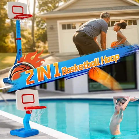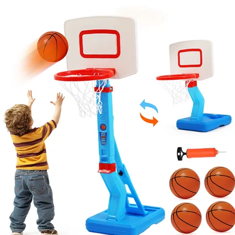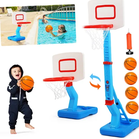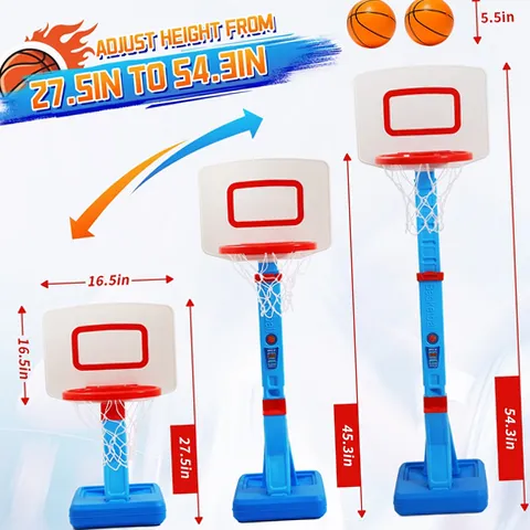JoyStone 2 in 1 Kids Basketball Hoop, Toddler Basketball Hoop Indoor Mini Adjustable Poolside Basketball Goals with Ball Pump for Boys Girls Outdoor Toys. JoyStone Kids Basketball Hoop Indoor Adjustable Height 27.6-54.3inch. This height-adjustable basketball goal for kids encourages active play and makes sports easy and worthy for growing toddlers. The basketball board base can be filled with water or sand, and sandbags or other heavy objects can be used to reinforce the basketball board base, which can better increase stability. These basketball toys can arouse their interests in healthy sports and improve their basketball shooting skills, good for your kids to develop basketball training.