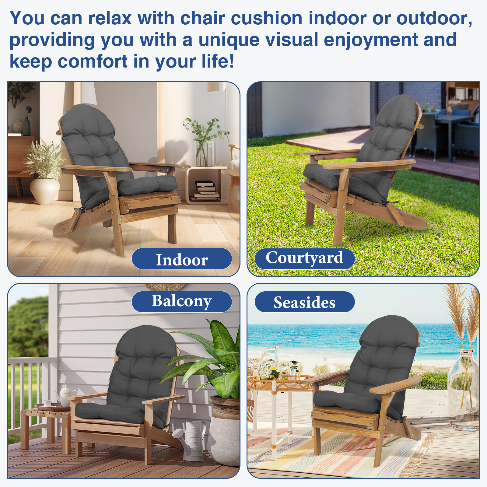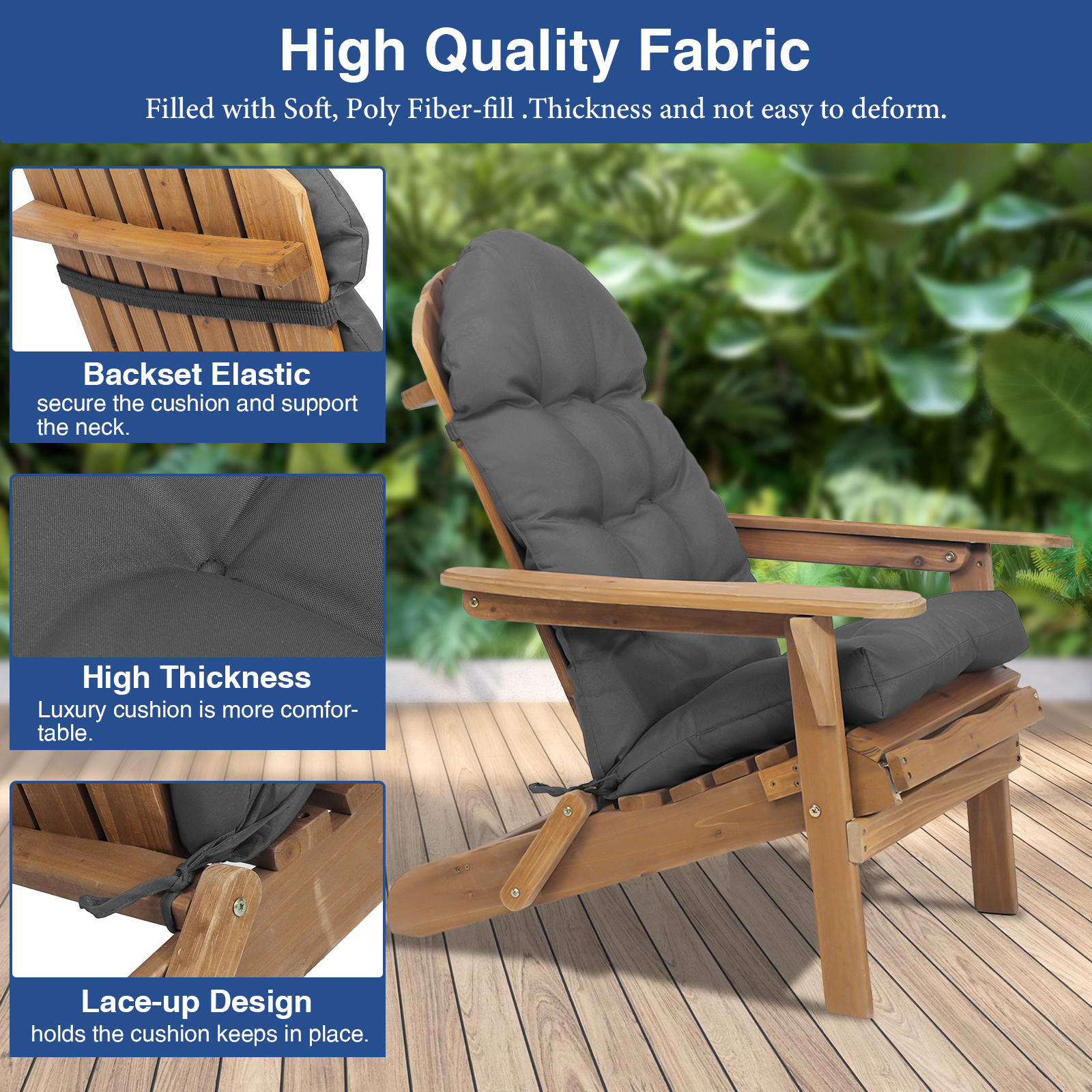 A TOUCH OF PERSONALITY: Easily customize your backyard, deck, or patio with this fun, Adirondack chair cushion. With an unbeatable combination of comfort and impeccable style, this accessory will be sure to enliven any lounge space.