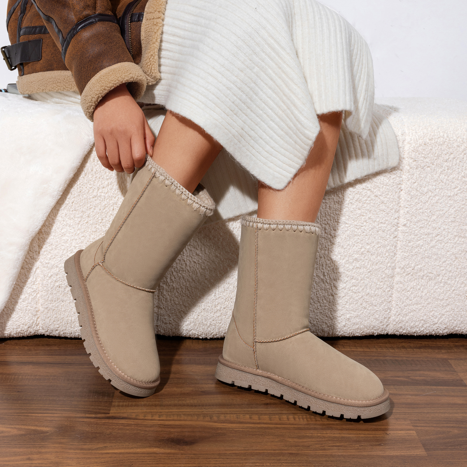 Stay warm and stylish with these mid-calf snow boots for women, designed for indoor and outdoor wear. The classic silhouette, highlighted by refined stitching, effortlessly complement any winter look. The plush lining keeps feet toasty and protected from the wind, while the slip-resistant outsole ensures exceptional grip and durability. Complete with a pull-on design, these snow boots make getting ready a breeze.