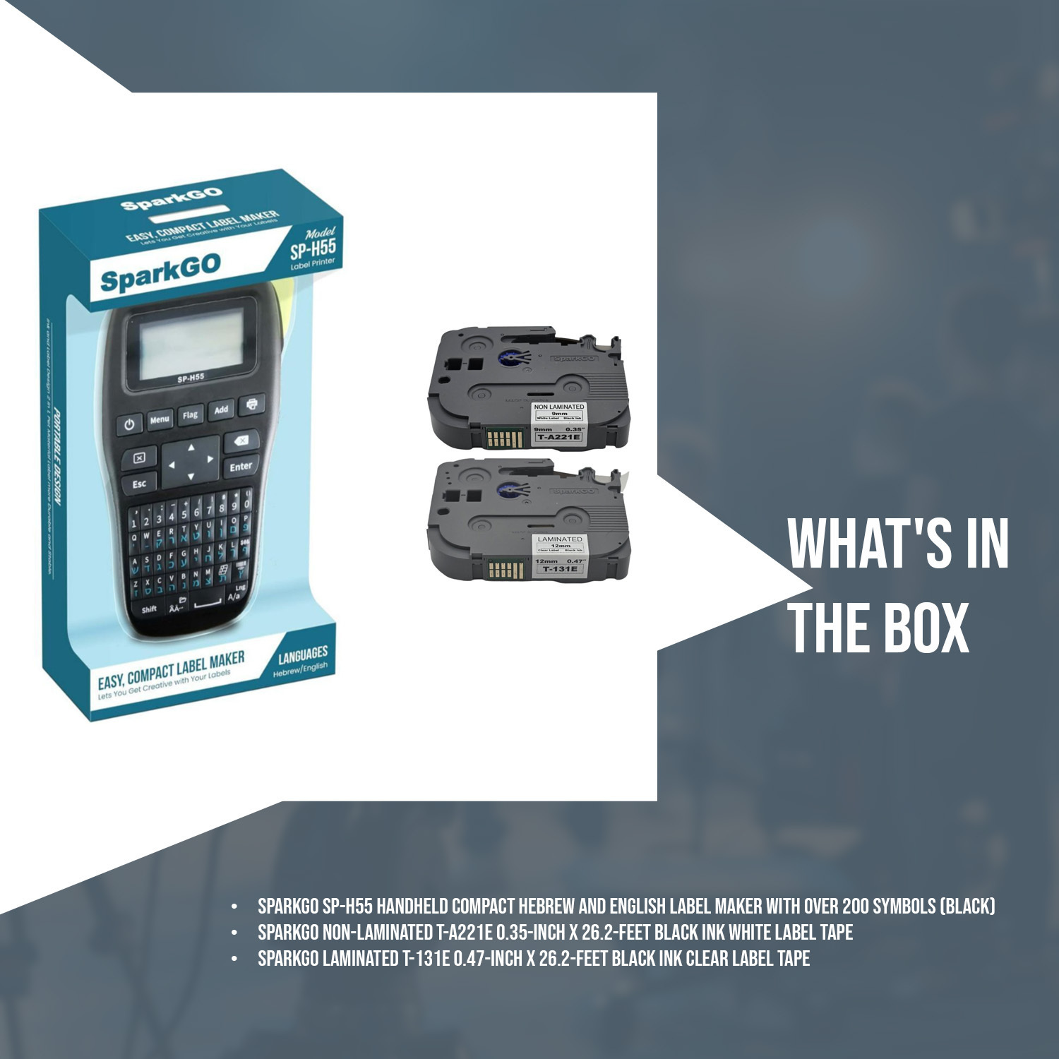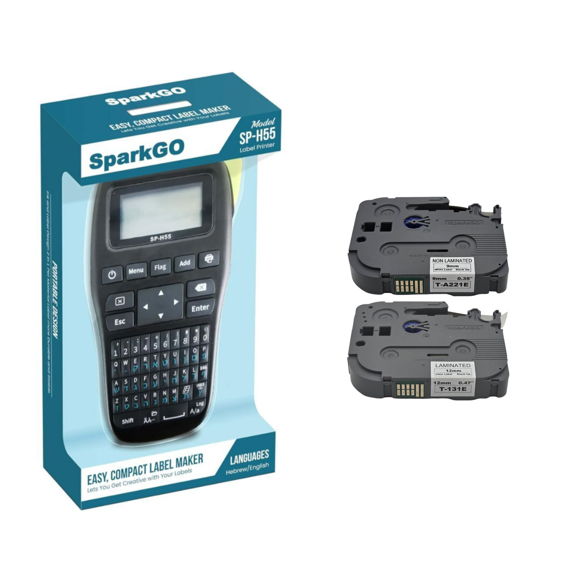 SparkGo SP-H55 Handheld Compact Hebrew and English Label Maker with Over 200 Symbols (Black)