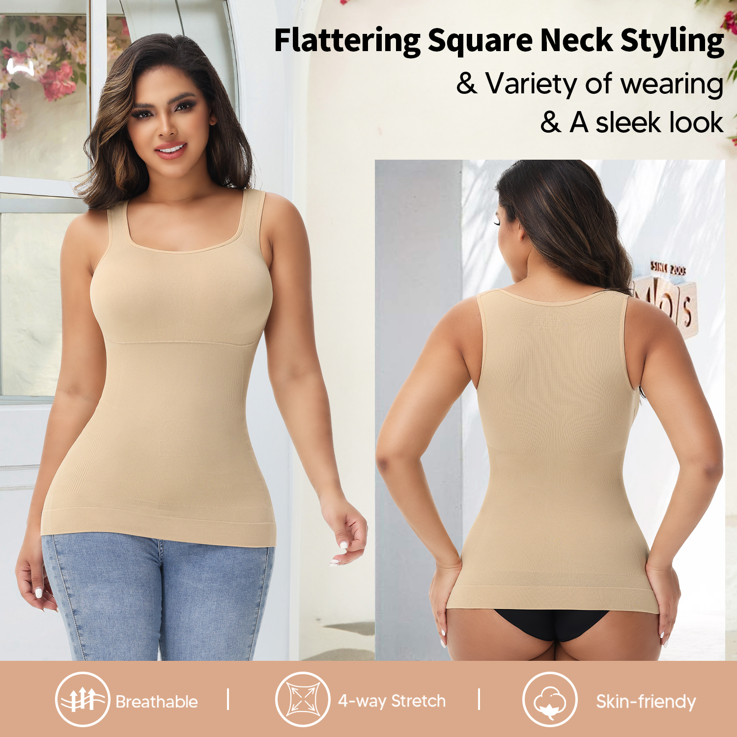 COMFORTABLE & DURABL: Our slimming shapewear tank top is made of 92% nylon and 8% spandex, lightweight and breathable wicking fabric releases moisture off your skin to help you stay cool and dry. Comfortable everyday smoothing.
