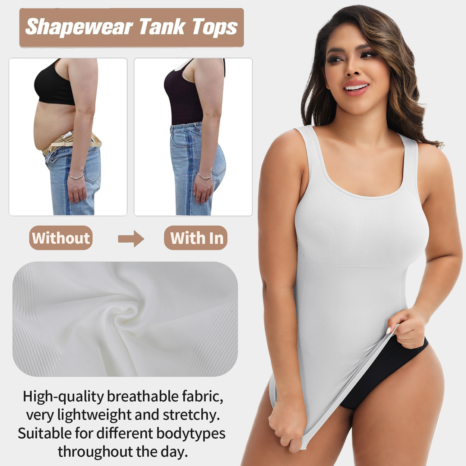 SHAPEWEAR TANK TOPS: design for every day wear, Invisible under clothes. Perfect to wear as comfortable sleepwear or under cloth, dress or skirts. Suitable for home clothes, evening party, wedding or night out.