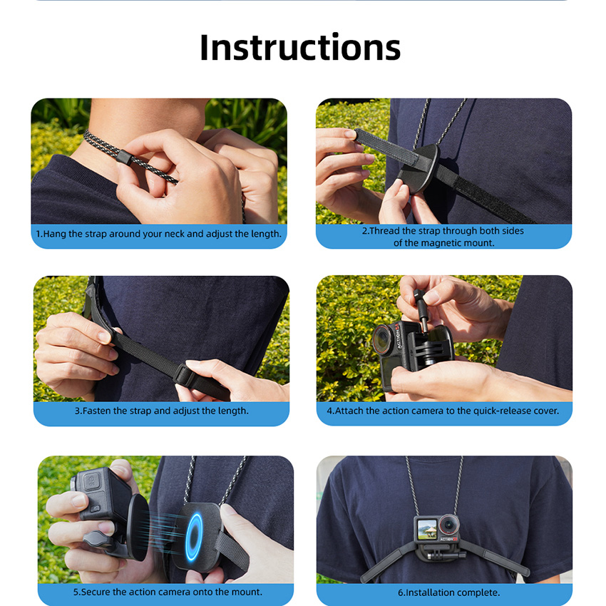 l Magnetic bracket neck, magnetic quick release, free hands, upgraded anti-shake straps Reduce shaking in intense scenes