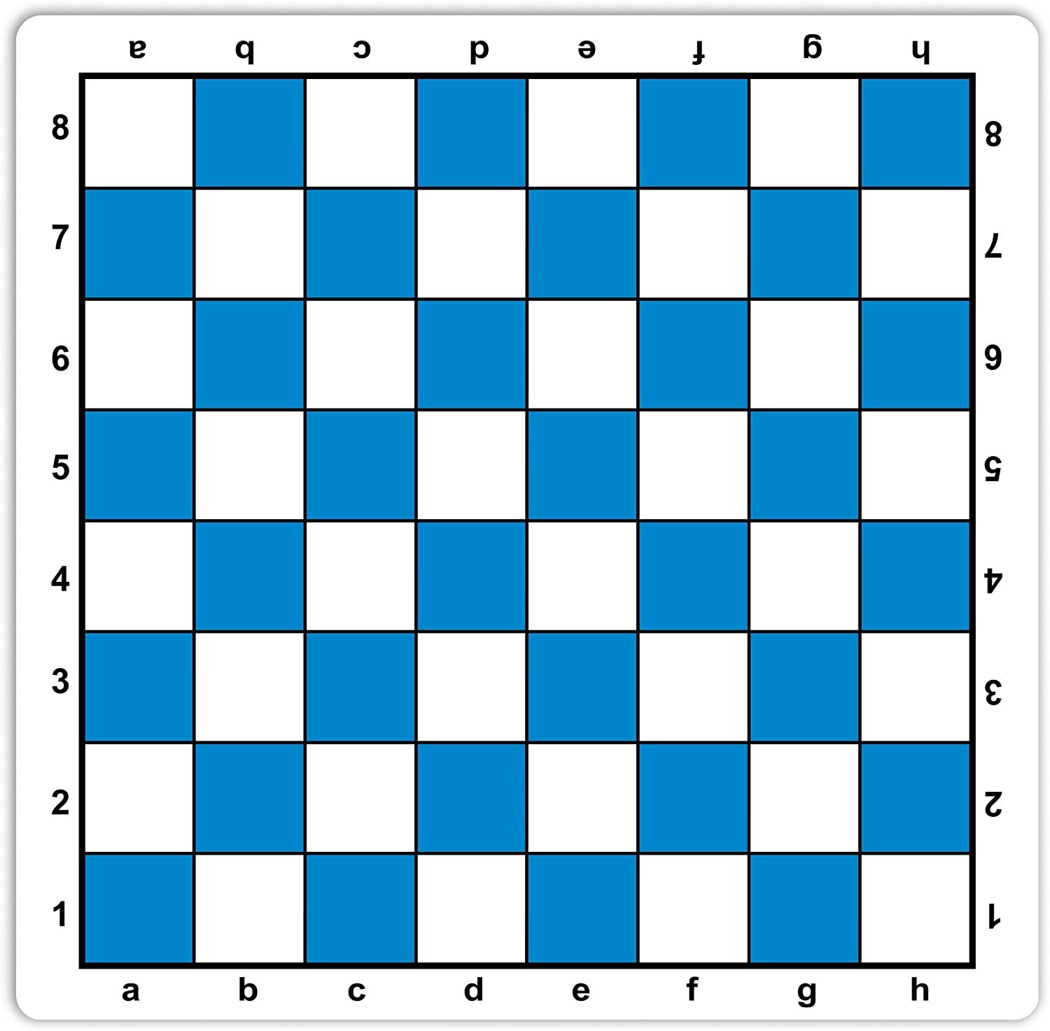This Mousepad Chessboard is a 20" tournament-ready mat. It meets FIDE/USCF standards with 2.25" squares, 0.07" thickness, and algebraic notation. Made of soft polyester blend with a rubber grippy bottom to prevent sliding. It is rollable/foldable for travel without keeping a crease. Vibrant blue and white colors. Washable and air-dry. Ideal for chess clubs, schools, tournaments.