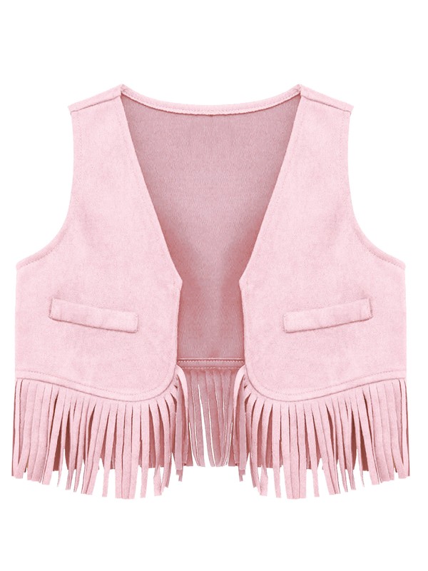 A suede cowboy vest for baby boy, open front design without button, loose to fit.