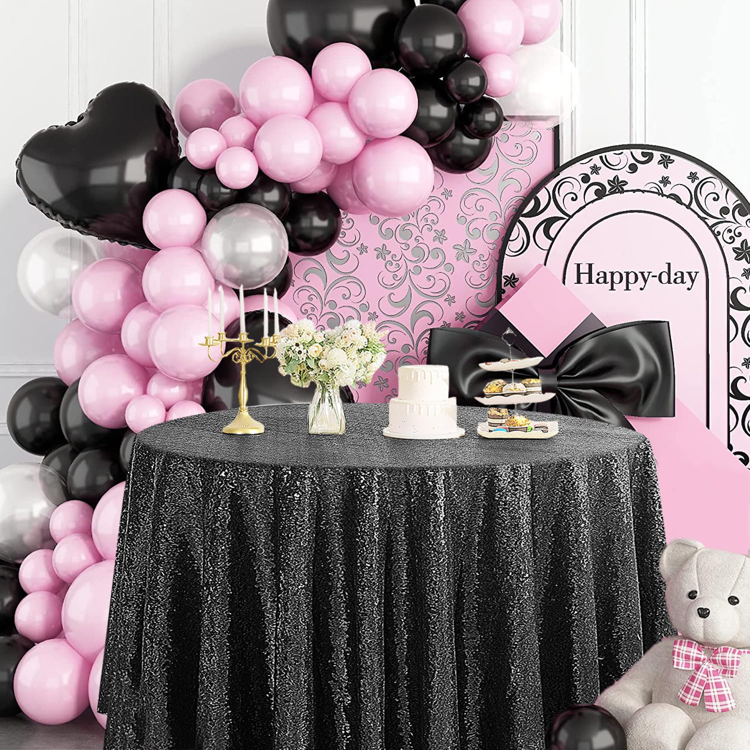 50" Round Black Sequin Tablecloth Glitter Black Table Cloths for Birthday Wedding Bridal Baby Shower Party Decorations