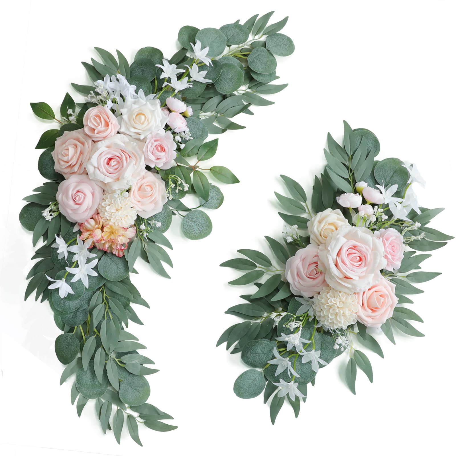 Artificial Pink Wedding Arch Flowers Swag Set of 2 for Wedding Welcome Signs Floral and Wedding Reception Ceremony Decorations, Cream Wedding Flowers Decor
