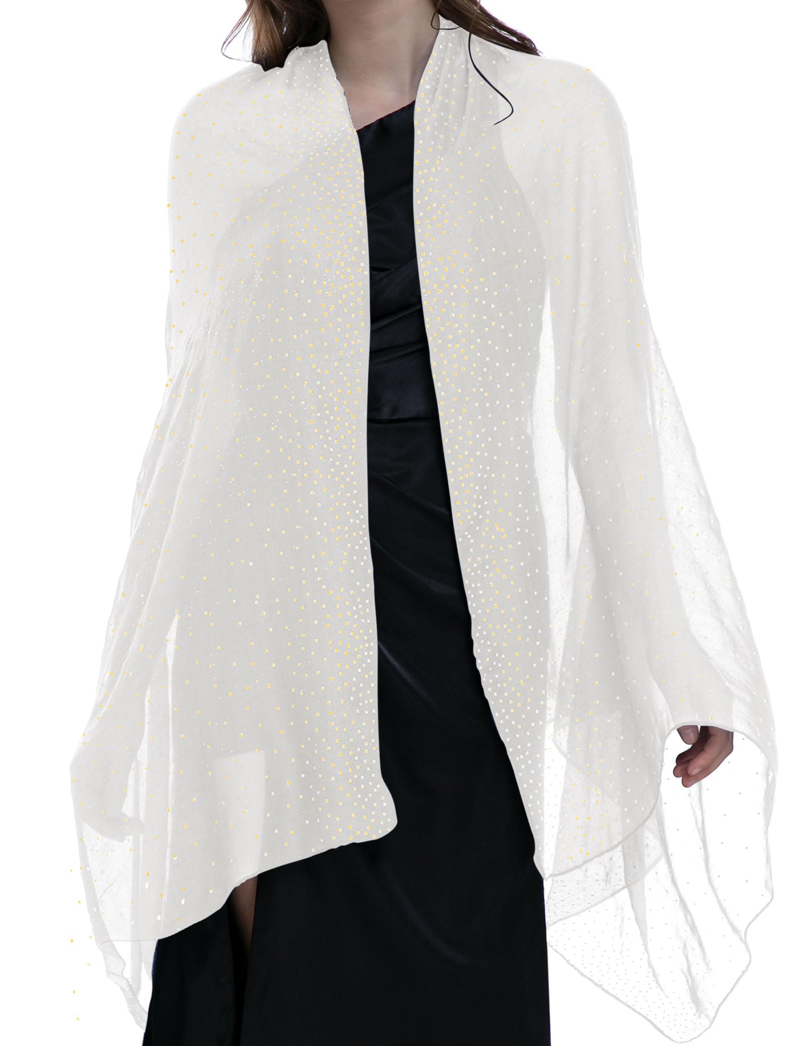 - Design:This versatile shawl for women is adorned with shimmering details that enhance its elegance, perfect for evening dresses or formal wear; its generous size ensures it can be styled as shawl wraps for women dressy or a cozy layer for added warmth