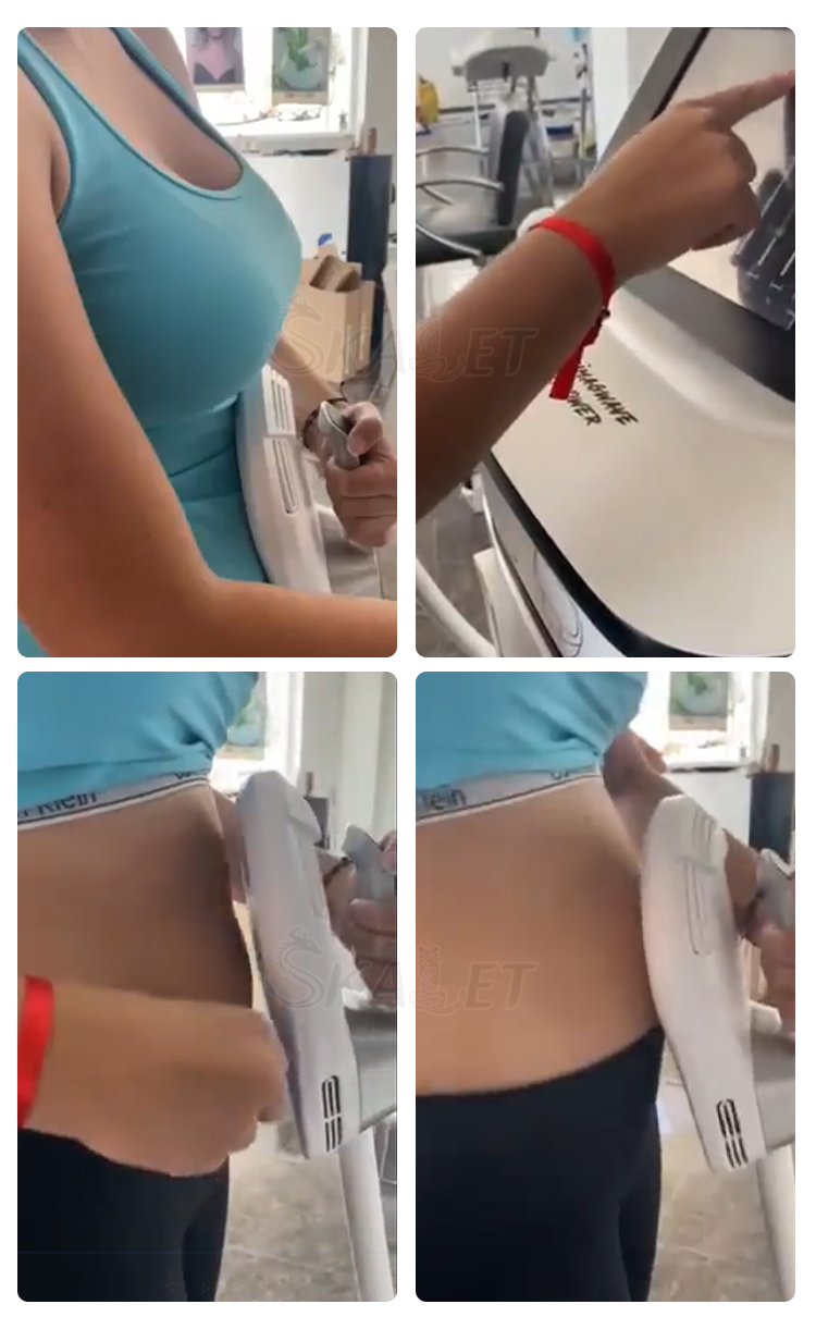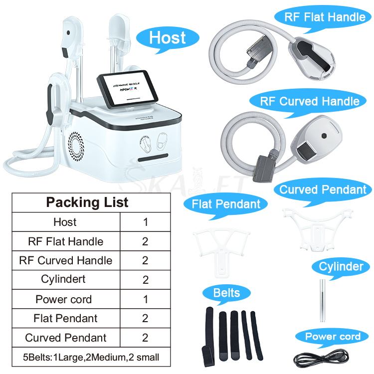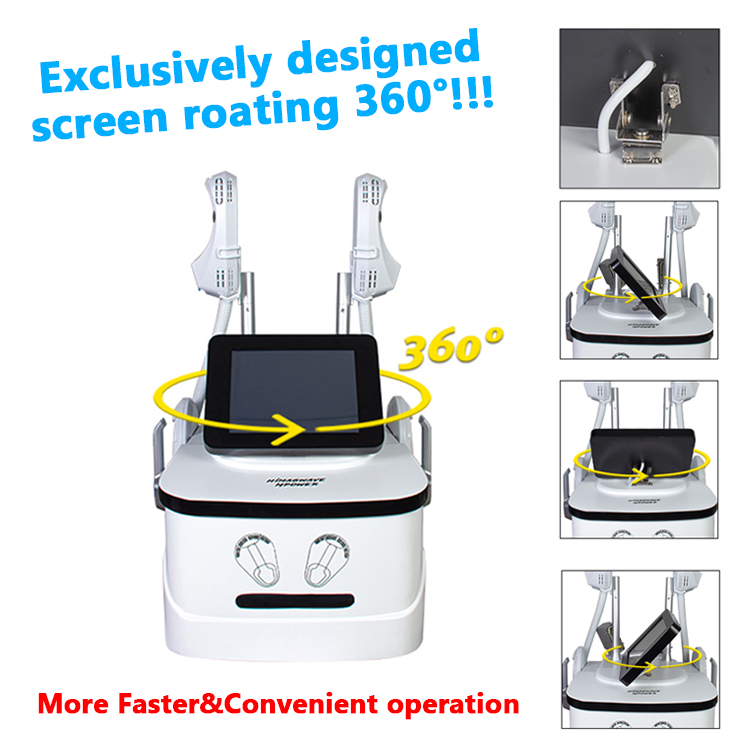 EMSCULIPL Magnetic Stand Lean Peach butt Toning Shaping waistcoat line RF device Product Description Particularly effective on the buttocks and abdomen, Himagwave S Neo uses High-Intensity Focused Electro-Magnetic (HI-EMT) field technology to induce short bursts of powerful muscle contractions that lead to increased muscle density, decreased volume, better definition, and improved tone. Himagwave S Neo is the only procedure to help both women and men build muscle and burn fat and the world's first non-invasive buttock lifting procedure. It works by supramaximal contractions; the muscle tissue is forced to adapt to such extreme condition. It responds with a deep remodeling of its inner the structure that results in muscle building, tightening, toning and burning fat. Himagwave S Neo helps patients achieve slimmer and more athletic body contours, by reducing abdominal fat and simultaneously building the muscle foundations underneath the fat. When applied to buttocks Himagwave S Neo gives the patients a more lifted, athletic shape. RF: The radio frequency heating prepares muscles for exposure to stress, similar to what a warm up activity does before any workout. In less than 4 minutes, fat cells are permanently damaged and slowly removed from the body. Clinical studies show on average a 30% reduction in fat. Simultaneously, HIEMWAVE+ energy contracts the muscles, resulting in an increase in the number and growth of muscle fibers and cells. Clinical studies show on average a 25% growth in muscle. BUILD MUSCLE The muscle contracts 30, 000 times with high frequency and intensity, so aslo train and increase muscle density and volume. REDUCE FAT Contraction of muscle needs a large amount of energy supply, so the fat cells beside the muscle are also consumed, leading to natural apoptosis and effective reduction of fat thickness. MUSCLE SCULPT Exercising the abdominal muscles, shaping the vest line / exercising the hip muscles, creating the peach hips / exercising the abdominal oblique muscles, and shaping the mermaid line. TREATMENT THE SEPARATION OF RECTUS Only HIEMT brings non-invasive technology to postpartum women and solves the problem of rectus. Benefits * Builds muscle & Burns fat Together * Non-invasive buttock lifting procedure * Suitable for everyone - No anaesthesia - No surgery * Only a 30 minute a procedure * Only 4 session needed * Feels like an intensive workout * Safe with No downtime * Instant results but gets better after two to four weeks * 16% average increase in muscle mass * 19% on average fat reduction Product Parameter Power: 3000W Voltage: 110/220V 50/60Hz Intensity: 0~7 Tesla Frequency: 100Hz/s Screen: 10.1 Inch Touch Screen Muscle Contraction: >30,000 times (30min) Cooling System: Air Cooling System Woke Mode: Auto/ Manual Function: Muscle Building, Buttocks Toning, Body Contouring & Shaping Advantage: High power, pluggable handle, handle can be controlled separately, No leakage